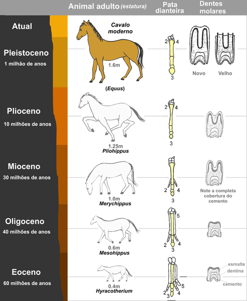 Há cinquenta milhões de anos atrás o cavalo era semelhante a uma lebre com 4 dedos nas patas dianteiras e 3 nas patas traseiras.